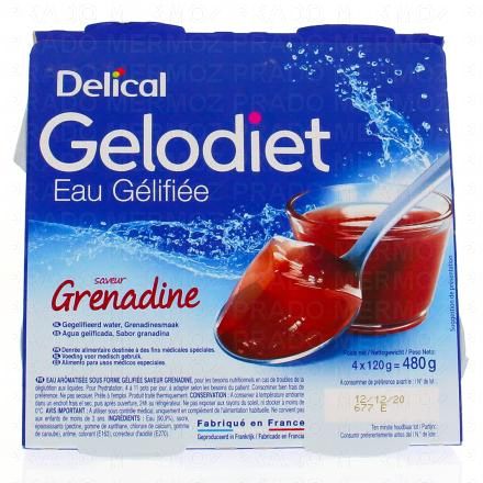 DELICAL Gelodiet - Eau gélifiée avec édulcorant saveur grenadine 4x120g